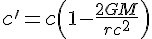 Ce qui veut dire que pour l'observateur à l'oo, la vitesse de la lumière au point r ( vitesse coordonnée) est moins grande que celle à l'oo (vitesse propre)Ce qui veut dire que pour l'observateur à l'oo, la vitesse de la lumière au point r ( vitesse coordonnée) est moins grande que celle à l'oo (vitesse propre)