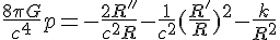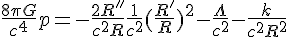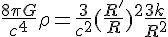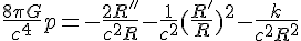 avec R le facteur d'échelle, R' et R'' respectivement la première et la seconde dérivée du facteur d'échelle, G la constante gravitationnelle,la densité d'énergie, p la pression,