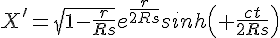 C'est ce qu'on obtient avec les coordonnées de Lemaître. De même que les coordonnées cosmologiques d'un Univers en expansion sont telles que les immobiles sont en chute libre, les coordonnés de Lemaître pour la solution de Schwarzschild sont telles que les immobiles sont en chute libre (radiale), et peuvent être vus (ce qui n'est qu'une manière de parler) comme se déplaçant "avec l'espace en contraction". Leur vitesse est nulle dans ces coordonnées.