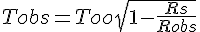 Par chance Rs/Robs est invariant quelque soit l'altitude H (distance-coordonnée par rapport au TN dans le référentiel de l'observateur) de l'observateur qui mesurera (R'obs; R's),
