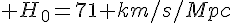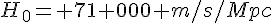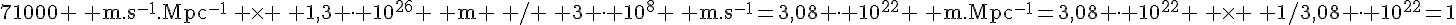Si tu prends pour H0 la valeur de 71000m/s/Mpc, tu vas te retrouver à la fin avec du m/Mpc comme unité, ce qui est sans dimension seulement si tu exprimes le mètre en Mpc et dans ce cas ton résultat est 1, ce qui est normal!