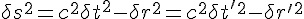 Je propose de prendre les coodonnés (t,r) et (t',r') en lieu et place des coordonnées (t,x,y,z) et (t',x',y',z') (2)