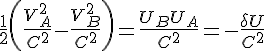 On considère à présent une expérience en chute libre. Une particule tombe lorsqu'elle est soumise au champ de gravitation. Elle possède les vitesse VA et VB lorsqu'elle se situe au point A et B. On applique la loi de conservation de l'énergie