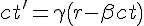 Je propose de prendre les coodonnés (t,r) et (t',r') en lieu et place des coordonnées (t,x,y,z) et (t',x',y',z')