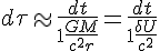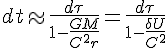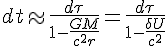 dans cette expression le temps propre à une distance r s'écoule moins vite que le temps de l'observateur de référence situé à l'oo