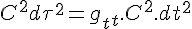 Le principe d'équivalence nous donne l'expression entre la coordonnée temporelle et le temps propre mesuré dans l'entourage de la distribution de masse.