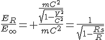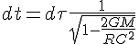 Il s'agit de l'écoulement du temps de l'observateur à l'oo tel qu'il est perçu par l'observateur local. Les formules ne sont pas les mêmes parce que la RR est combinée avec la RG.