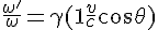 En jaune la position initiale sur un cercle, en rouge la position définie par nouvelles coordonnées (cos+(v/c) ; sin