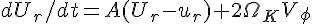 donc on a une particule qui gravite à la vitesse de kepler autour d'une étoile sur l'orbite "noire" on exprime la vitesse U de la particule : et u la vitesse du gaz restant qui est en rotation autour de l'étoile.