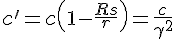 c' est la vitesse de la lumière (coordonnée ) à une distance r du centre du TN