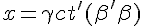 on'a x=k(x'+ut') ceci donne t=k(t'+u/c².x') , x'=ct'.