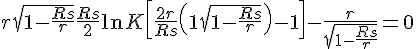 La principale erreur réside dans l'utilisation de la relation pour r1=Rs et r2=r. C'est par définition la longueur physique entre Rs et r(projetée sur un espace plat). Tu n'a donc pas le droit de la réutiliser en r1 et r2 puisque cela a déjà été posé au préalable. r1 est fixé en Rs, point. Or cela est "intraçable" puisque la courbe rouge tend vers l'infini en Rs. Si tu veux faire cette compraison(courbe verte sur l'axe des ordonnée, courbe rouge sur la courbe), tu peux par exemple prendre r1 = 4/3 et r2=r>4/3 en posant Rs=1. On compare alors la longueur entre r1=4/3(à l'origine sur l'axe des abscisses donc) et r2=2 sur la courbe verte et sur la rouge. Je l'ai fait et ça colle.