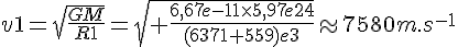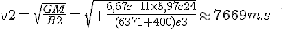 Calculons la vitesse adéquate pour rester dans l'orbite de l'ISS. On utilise la même formule que pour Hubble au début.
