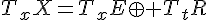 Le point central est qu'en classique on a une décomposition canoniqueou E est l'espace spatial, et R est le temps, l'"espace temporel". De sorte que les autres observateurs se mettrons toujours d'accord sur la seconde partie (la projection sur T_tR) mais pas la premiere.