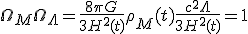Remarque : c'est une des raisons pour lesquelles on a besoin de Lambda. Même en tenant compte de l'hypothétique matière noire (quoi que ce soit) dans la densité d'énergie de la matière, il manque encore 70% de la densité d'énergie nécessaire pour atteindre la densité totale expliquant qu'on observe un espace plat. Sinon on pourrait se contenter du modèle d'Einstein-de Sitter, dans lequel l'équation de Friedmann se simplifie encore plus, puisqu'elle se réduit alors à