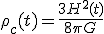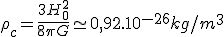 et à appeler densité critiquela valeur du membre de droite de l'équation. "Critique" dans le sens où la somme des densités d'énergie de tous les types de contenus de l'univers doit être égale à cette valeur pour que l'espace soit plat. Mais il ne s'agit jamais que d'une valeur obtenue à partir des mesures de la constante G d'une part et du paramètre de Hubble d'autre part.