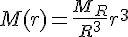 Masse volumique uniforme (donc m/M = r^3/R^3).