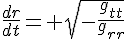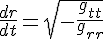 Pour un photon, on a toujours ds²=0 (genre nul), donc pour une radiale (sous entendu le système de coordonnées possède une symétrie sphérique)(je prends c=1).