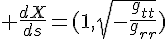 Bonjour, merci pour vos éclaircissements, je vais détaillé ma vision de la 'chose' (pas le film de SF), je prend un quadri-vecteur X=(s=ct, r), la courbe s=ct est celle d'un photon dans l'espace, en gros un espace-espace, puisqu'il contient le temps, on dit espace-temps, dX=(ds,dr) ce qui donne dX²=dS²=g(t,t)ds²-g(r,r)dr²+..., or si dx=ds=cdt, on'a dS²=0, càd, soit g(t,t)=g(r,r) différent de 1, soit que g(t,t) différent de g(r,r) comme en métrique de Schwarzschild, le photon a deux comportement suivant l'espace (r) et l'espace (s=ct) mais par hypothèse