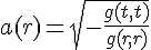 Si le système de coordonnées est tel que a=1 (partout ou en au moins un évènement), alors on aura g_{tt}=-g_{rr} (partout ou en au moins l'évènement en question).