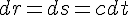 (ou inversement, selon signature), donc dr/dt=1 ou -1 : la vitesse coordonnée de la lumière est 1, et c'est ce qu'on attend de coordonnées Lorentziennes.