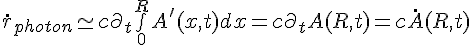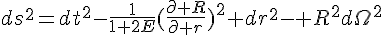 On remarque au passage que, dans le temps propre d'un l'observateur "à l'infini", cela a pour effet de "rapprocher" l'horizon apparent, initialement de rayon R=M et situé dans à l'infini dans son futur, puisque l'instant t est atteint en un temps fini (et ça reste vrai même pour une coquille de masse infinitésimale, si on considère l'accroissement infinitésimal du rayon de l'horizon apparent dû à l'effondrement de la coquille).