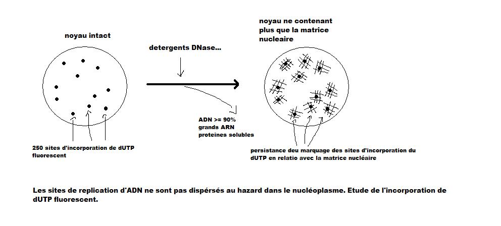 ce que je connais c'est que la matrice ou bien l'espace périnucléaire (situé entre les 2 membranes externe et interne) contient des pore,ces derniers composées pas des annulus(annaux + diafragmme) qui sont des complexes protéiques chargées positivement intervenant dans la régulation des échanges entre le noyau et le cytoplasme..