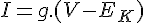 avec V potentiel membranaire (et non de repos), et Ek potentiel d'équilibre du potassium.
