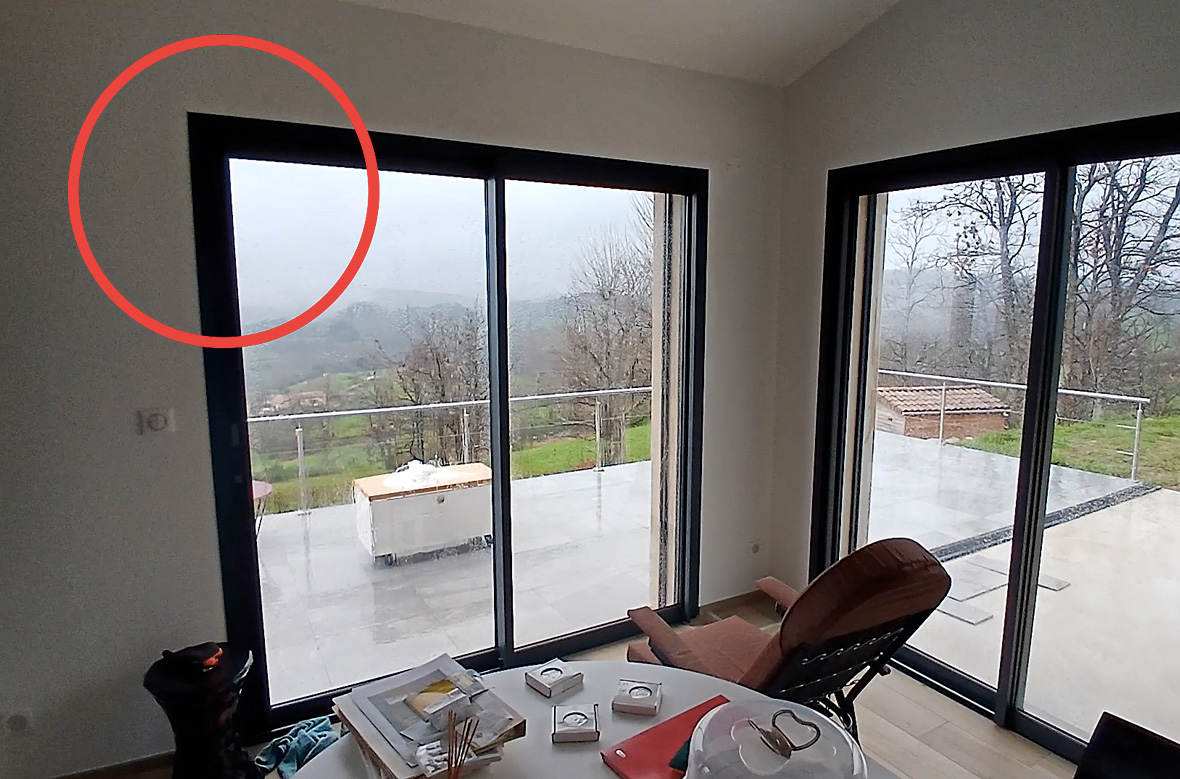 J'ai localisé le bruit au niveau supérieur gauche de la baie alu, sans pouvoir dire avec certitude si cela venait de la menuiserie ou de la maçonnerie.