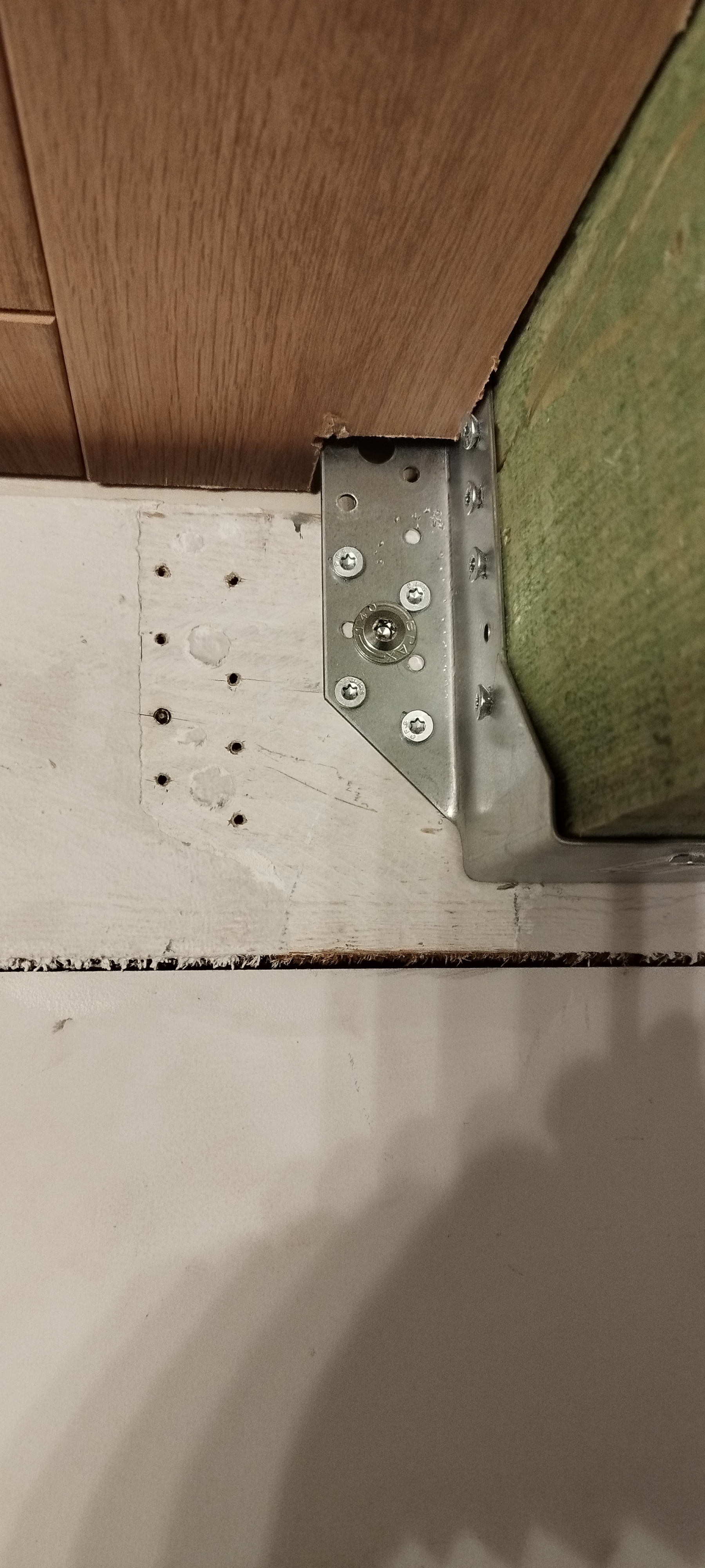 Une fois la poutre ancrée des 2 côtés, il a scié 5 solives du même côté pour faire un trou dans le plancher et y placer l'escalier.