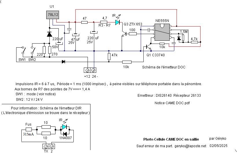 A une exception près : je n'ai pas fait le pont entre le 2 et C sur la RX directement : J'ai relié le C de la TX au 2 du bornier de la carte.