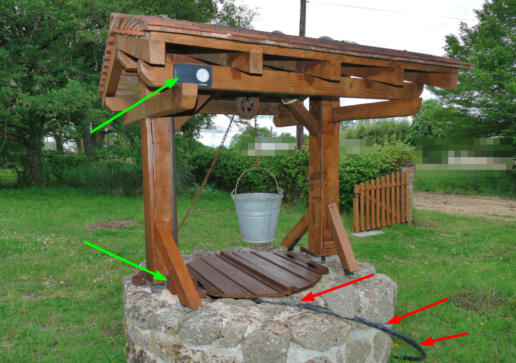 Nous avons un puits en bout de jardin, à 16 mètres de la maison :