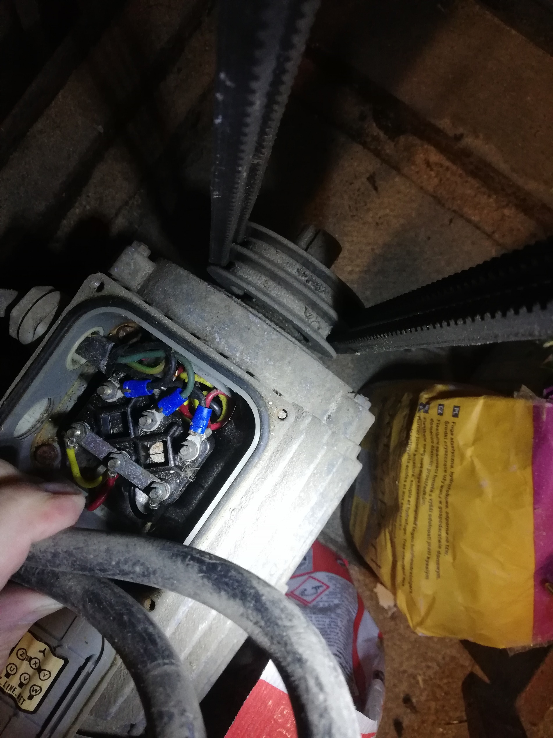 Je précise que le vendeur m'a soutenu qu'il l'utilisait en monophasé mais qu'il n'y a pas de condensateur visible ... Il n'y a qu'une phase de branchée sur le contacteur avec un fusible de 20 Ampères...(les 2 autres porte fusible et fusibles sont absents) c'est beaucoup,non ? J'ai tenté de le faire marcher en mono ,la lame bouge de 10° environ puis rien.
