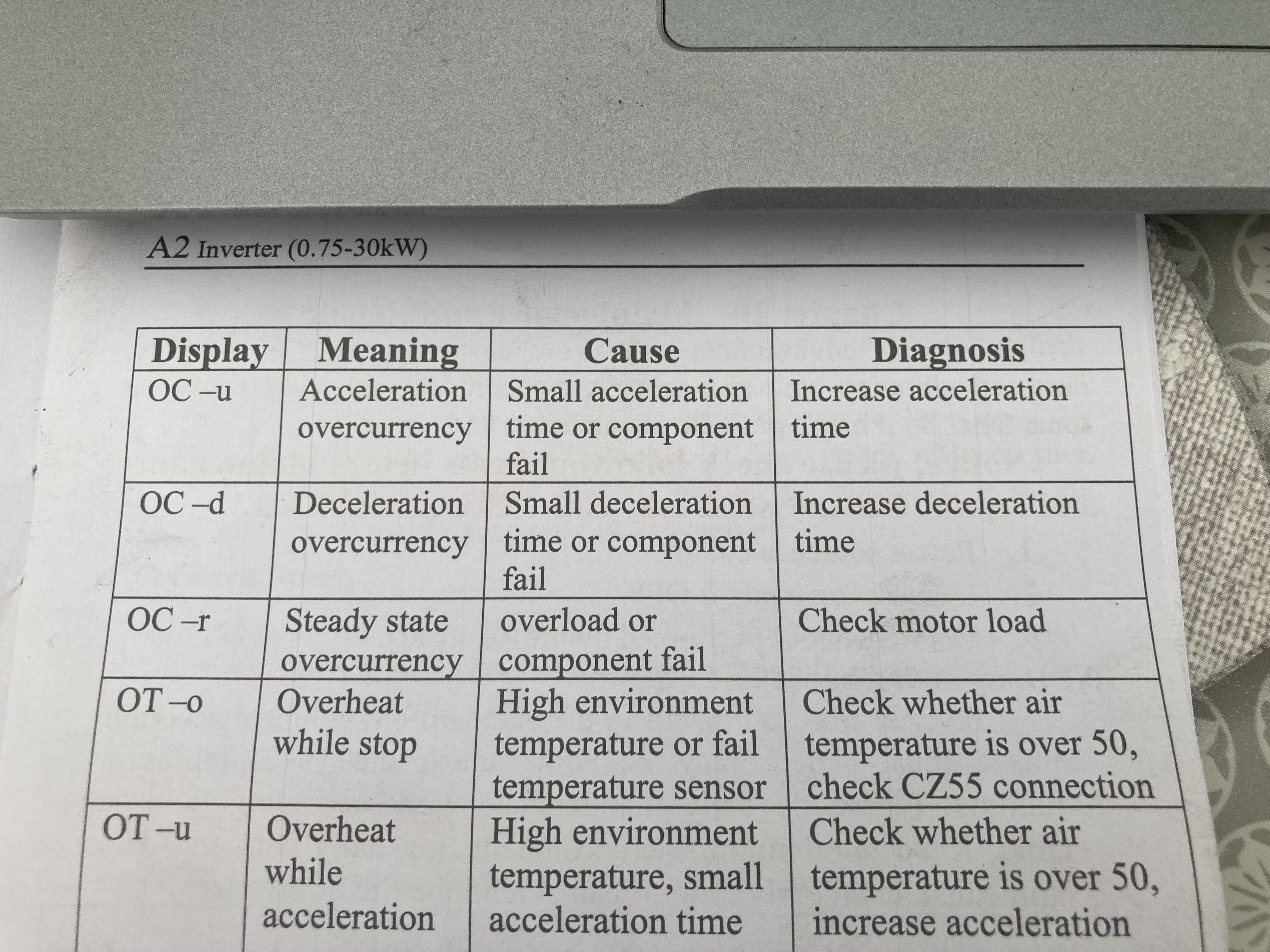 il semble qu'il faille modifier le paramètre temps d'accélération au démarrage et peut être le parmètre courant admis du moteur