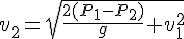 P1 + 1/2 x g x v1² = P2 + 1/2 x g x v2²