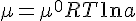 u = u(soluté en solution infiniment diluée dans l'échelle des concentrations molaires) + RT ln (C(soluté)/C°) avec c°=1mol/L