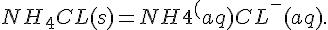 NH4CL (s) + H2O (l) = NH4+ (aq) + CL- (q)