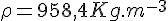 masse volumique de l'eau liquide à 100°C .p=958,4 Kg/