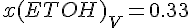 - On commence par déterminer les fractions molaires d'éthanol (et d'eau) notées x dans le grain et la vodka à partir des fractions massiques w