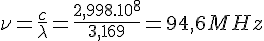 On me demande de calculer la fréquence correspondant à une longueur d'onde de 3.169 m (radio FM)