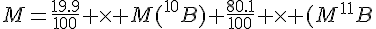 LE BORE NATUREL de masse atomique 10.811est un mélange isotopique de deux isotopes 10 B ET 11B d abondances respectives de 19.9 et 80.1( nombres d isotopes pour 100 atomes constituant un élément naturel ) Sachant que la masse de l 'isotope 11B est de 11.0093 calculer la masse molaire du 10 B