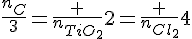 2 TiO2 + 3 C(s) + 4 Cl2(g) ---> 2 TiCl4(g) + CO2(g) + 2 CO(g)