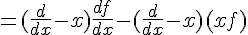 notre exemple dit que Âf = (d/dx - x)²f = (d/dx - x) (d/dx - x)f = f" - xf' -f -xf' + x²f !! . d'où sort le (-f) ? que vers la fin de l'exercice c avéré être l'opérateur identité Oo .. qui peu m'éclairé ??! mercii d'avance