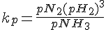 La réaction 2NH3 (g) <-> N2 (g) + 3 H2 (g) a un kp de 1.87 . 10^-6 atm sous une pression de 10^-4 atm.