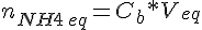 Il faut donc [NH4+]eq, et là en cours le prof a marqué [NH4+]eq = (Cb*Vb)/(Va + Vb) = (25*1,5)/(25+15) = 0,93 mol/L.