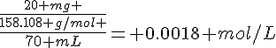 Notre problème, c’est que les volumes de solution de thiosulfate nécessaires au dosage ne correspondent pas à ceux attendus. En effet, si l’on prend l’exemple de 20 mg, on a une concentration théorique de notre solution est de.
