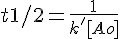 Dans la seconde experience, on divise par deux la concentration du reactif en excès et on note les concentrations du reactif limitant