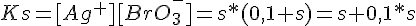 Données : Ks de AgBrO3 = 5.8 x10-5 et juste avant j'ai calculer la solubilité de AgBrO3 dans 1L d'eau ça donnait s= 7.62 x 10-3