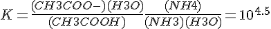 CH3COOH + NH3 donne NH4+ + CH3COO- K