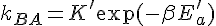 On considère une réaction chimique A <-> B. Les taux de transition d'un état à un autre sont donnés par la loi d'Arrhenius :